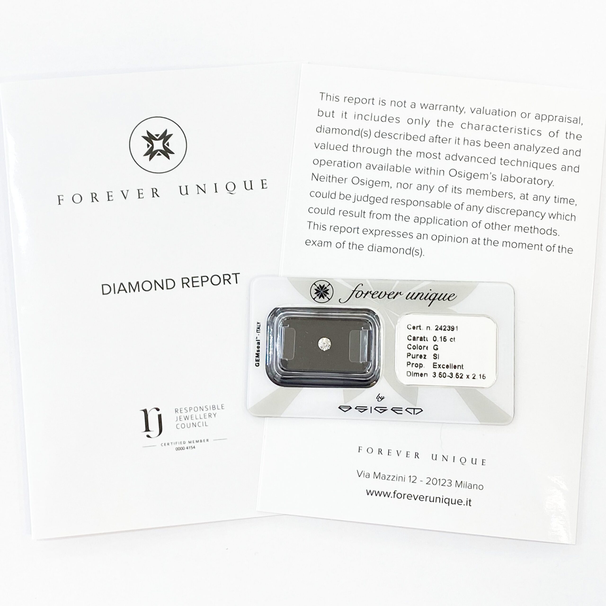 Gyémánt 015ct 242391 Osigem-Responsible Jewellery Council-Forever unique